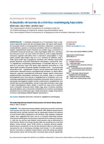 Kékes, Ede and Vályi, Péter and Kovács, Tibor (2025) A diasztolés vérnyomás és a krónikus vesebetegség kapcsolata. HYPERTONIA ÉS NEPHROLOGIA, 29 (1). pp. 9-17. ISSN 1418-477X