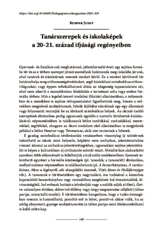 Kusper, Judit (2025) Tanárszerepek és iskolaképek a 20-21. század ifjúsági regényeiben. In: Pedagógiai összhangzattan : Tanulmányok a 70 éves Pukánszky Béla tiszteletére. Eszterházy Károly Katolikus Egyetem Líceum Kiadó, Eger, pp. 169-179. ISBN 978-963-496-293-9