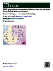 Kolostyák, Zsuzsanna and Bojcsuk, Dóra and Baksa, Viktoria and Máthéné Szigeti, Zsuzsa and Bene, Krisztián and Czimmerer, Zsolt and Botó, Pál and Fadel, Lina and Póliska, Szilárd and Halasz, Laszlo and Tzerpos, Petros and Berger, Wilhelm K. and Villabona-Rueda, Andres and Varga, Zsófia and Kovács, Tünde and Patsalos, Andreas and Pap, Attila and Vámosi, György and Bay, Péter and Dezső, Balázs and Spite, Matthew and D'Alessio, Franco R. and Szatmári, István and Nagy, László (2024) EGR2 is an epigenomic regulator of phagocytosis and antifungal immunity in alveolar macrophages. JCI INSIGHT, 9 (17). No. e164009. ISSN 2379-3708