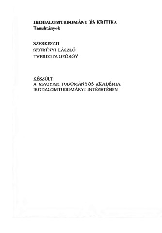 | Subjects: | P Language and Literature / nyelvészet és irodalom > PN Literature (General) / irodalom általában > PN0080 Criticism / irodalomkritika P Language and Literature / nyelvészet és irodalom > PN Literature (General) / irodalom általában > PN0441 Literary History / irodalomtörténet |
