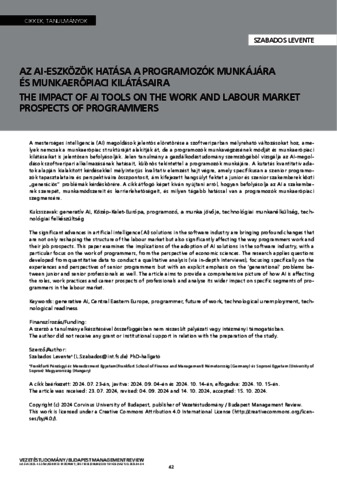 Szabados, Levente (2025) Az AI-eszközök hatása a programozók munkájára és munkaerőpiaci kilátásaira. VEZETÉSTUDOMÁNY, 56 (4). pp. 42-56. ISSN 0133-0179