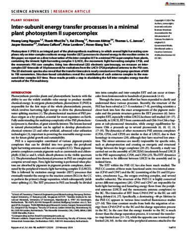 Nguyen, Hoang Long and Do, Thanh Nhut and Zhong, Kai and Akhtar, Parveen and Jansen, Thomas L. C. and Knoester, Jasper and Caffarri, Stefano and Lambrev, Petar and Tan, Howe-Siang (2024) Inter-subunit energy transfer processes in a minimal plant photosystem II supercomplex. SCIENCE ADVANCES, 10 (8). ISSN 2375-2548