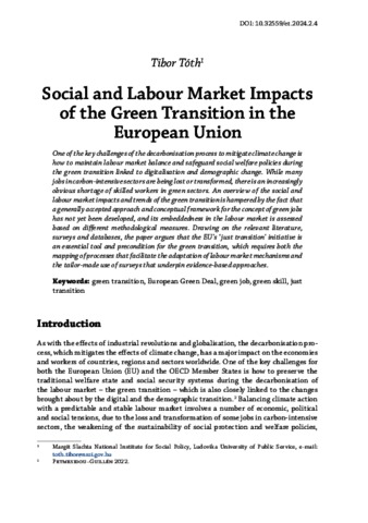 Tóth, Tibor (2024) Social and Labour Market Impacts of the Green Transition in the European Union. EURÓPAI TÜKÖR: AZ INTEGRÁCIÓS STRATÉGIAI MUNKACSOPORT KÉTHAVONTA MEGJELENŐ FOLYÓIRATA, 27 (2). pp. 75-93. ISSN 1416-6151