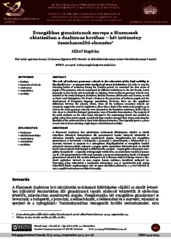 Rébay, Magdolna Éva (2024) Evangélikus gimnáziumok szerepe a főnemesek oktatásában a dualizmus korában : 7 intézmény összehasonlító elemzése. PEDAGÓGIATÖRTÉNETI SZEMLE, 6 (1). pp. 101-116. ISSN 2415-9093