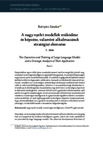 Bottyán, Sándor (2025) A nagy nyelvi modellek működése és képzése, valamint alkalmazásuk stratégiai elemzése : 1. rész. NEMZETBIZTONSÁGI SZEMLE (ONLINE), 13 (1). pp. 77-95. ISSN 2064-3756