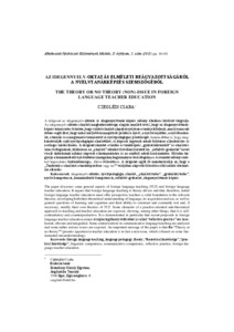 A dolgozat az idegennyelv-oktatás és idegennyelvtanár-képzés néhány általános kérdését tárgyalja. Az idegennyelv-oktatás elméleti meghatározottsága alapján amellett érvel, hogy az idegennyelvtanár-képzés természetes feladata, hogy szilárd elméleti alapokat nyújtson a tanárjelölteknek, amely nemcsak abban segíti őket, hogy minél mélyebben megértsék például a nyelv, a nyelvelsajátítás, a nyelvhaszná-lat, a tanulás és a megismerés természetét és nyelvpedagógiai jelentőségét, hanem abban is, hogy meg-konstruálják saját nyelvpedagógiai elméletüket, és képesek legyenek annak folytonos ellenőrzésére és esetleges módosítására. A dolgozat rámutat a tanítás és tanárképzés „gyakorlatorientált” és elméletel-lenes felfogásának, különösen az „elméleti” oktatást felváltani hivatott ún. „reflektív gyakorlat” nevet viselő doktrínának néhány alapvető ellentmondására és az ezekből adódó kockázatokra. Röviden tár-gyalja a kommunikatív nyelvoktatási mozgalom hagyományos kulcsfogalmait, és rámutat néhány ezek-kel kapcsolatos tisztázatlanságra, illetve félreértésre. A dolgozat egyik fő mondanivalója az, hogy a „Tanítsunk-e elméletet a tanárképzésben vagy ne?” valójában alapvető félreértésekből adódó értelmet-len álkérdés.