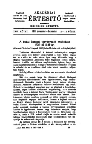 Pilch, Jenő (1918) A budai katonai törvényszék működése 1775-től 1848-ig : Székfoglaló értekezés [levelező, kivonat]. AKADÉMIAI ÉRTESÍTŐ (1890-1955), 29 (11-12). pp. 425-435. ISSN 0200-0326