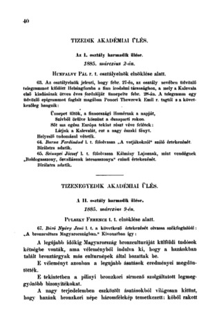 Nyáry, Jenő (1885) A bronzcultura Magyarországban : Székfoglaló értekezés [levelező, kivonat]. A MAGYAR TUDOMÁNYOS AKADÉMIA ÉRTESÍTŐJE (1867-1889), II/19 (2). pp. 40-41. ISSN 0200-0601
