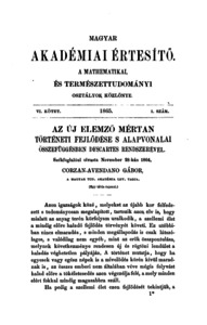 Corzan Avendano, Gábor (1865) Az új elemző mértan történeti fejlődése s alapvonalai összefüggésben Descartes rendszerével : Székfoglaló értekezés [levelező]. Magyar Akadémiai Értesítő. Mathematikai és természettudományi osztályok közlönye, 6 (1). pp. 1-42. ISSN 0200-0539