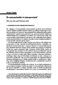 Ebben a tanulmányban a kvantumelmélet interpretációiról igyekszem rövid áttekintést nyújtani. Az interpretációkat a mérési problémára adott válaszaik alapján fogom osztályozni. A mérési probléma az alábbi három állítás inkonzisztenciájaként fogalmazható meg: 1) A kvantumállapot az egyedi fizikai rendszereket teljes körűen jellemző ontikus állapot. 2) A kvantumelmélet dinamikája univerzális. 3) A kvantumelmélet számot ad a mérési kimenetekről. Az elmélet interpretációi tehát az alapján csoportosíthatók, hogy a fenti három állításból melyiket fogadják el és melyiket adják fel.