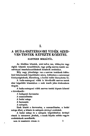 Hantken, Miksa (1866) A buda-esztergomi vidék szerves testek képezte kőzetei : Székfoglaló értekezés [levelező]. MATHEMATIKAI ÉS TERMÉSZETTUDOMÁNYI KÖZLEMÉNYEK : VONATKOZÓLAG A HAZAI VISZONYOKRA, 4 (1). pp. 1-12.