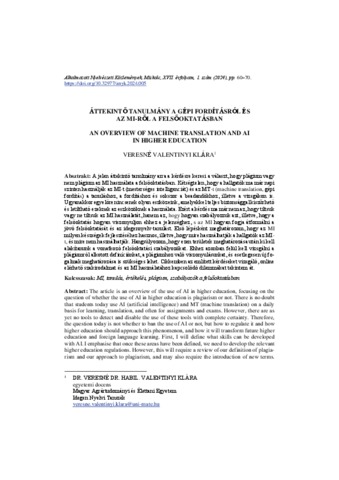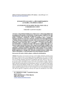 Veresné Valentinyi, Klára (2024) Áttekintő tanulmány a gépi fordításról és az MI-ről a felsőoktatásban = An overview og machine translation and AI in higher education. ALKALMAZOTT NYELVÉSZETI KÖZLEMÉNYEK, 17 (1). pp. 60-70. ISSN 1788-9979