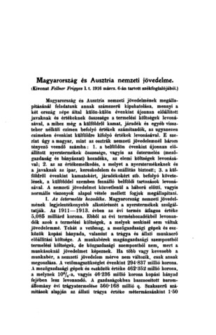Fellner, Frigyes (1916) Magyarország és Ausztria nemzeti jövedelme : Székfoglaló értekezés [levelező, kivonat]. AKADÉMIAI ÉRTESÍTŐ (1890-1955), 27 (4). pp. 263-271. ISSN 0200-0326