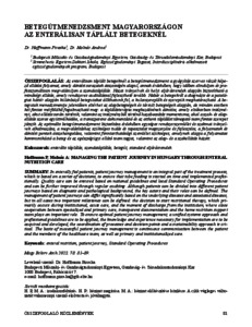 Az enterálisan táplált betegeknél a betegútmenedzsment a gyógyítás szerves részét képező ellátási folyamat, amely döntési sorozatok összességén alapul, annak érdekében, hogy időben elinduljon és professzionálisan megvalósuljon a szondatáplálás. Hazai irányelvek és helyi eljárásrendek alapján biztosítható a minőségi ellátás, amely rendszeres auditálással fejleszthető tovább. Habár a betegekről a diagnózis és a patológiai háttér alapján különböző betegutakat állíthatunk fel, a kulcsszereplők és szerepük meghatározható. A betegutak menedzsmentje jelentősen eltérhet az alapbetegségek és társult betegségek alapján, de minden esetben két fontos mérföldkő fogalmazható meg: a táplálásterápia megkezdésének döntése, amely elsősorban intézményi, akut ellátás során történik, valamint az intézményből történő hazabocsátás momentuma, ahol a szak- és alapellátás szoros együttműködése, a transzparens dokumentáció és az otthoni táplálást támogató team fontos szerepet játszik. Az optimális betegútmenedzsment biztosítása érdekében egységes rendszerszemlélet és szakmai irányelvek alkalmazása, a megvalósításhoz szükséges tudás és tapasztalat megszerzése és fejlesztése, a folyamatok és döntési pontok összehangolása, valamint fenntarthatósági szemlélet szükséges, amelynek alapja a folyamatos kommunikáció a beteg és az egészségügyi ellátó team tagjai, valamint az alap- és a szakellátás között. | In enterally fed patients, patient journey management is an integral part of the treatment process, which is based on a series of decisions, to ensure that tube feeding is started on time and implemented professionally. Quality care can be ensured based on national guidelines and local Standard Operating Procedures and can be further improved through regular auditing. Although patients can be divided into different patient journeys based on diagnosis and pathological background, the key actors and their roles can be defined. The management of patient journeys can differ significantly based on the underlying diseases and associated diseases, but in all cases two important milestones can be defined: the decision to start nutritional therapy, which primarily occurs during institutional, acute care, and the moment of discharge from the institution, where close cooperation between specialized and primary care, transparent documentation and the home nutrition support team plays an important role. To ensure optimal patient journey management, a unified systems approach and professional guidelines are to be applied, the knowledge and experience necessary for implementation are to be acquired and developed, the coordination of processes and decision points and a sustainability approach is critical. The basis of successful patient journey management is continuous communication between the patient and the members of the healthcare team, as well as primary and institutionalized care.
