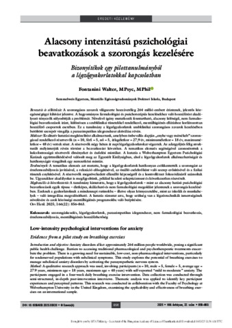 Fontanini, Walter (2025) Alacsony intenzitású pszichológiai beavatkozások a szorongás kezelésére : Bizonyítékok egy pilottanulmányból a légzőgyakorlatokkal kapcsolatban = Low-intensity psychological interventions for anxiety : Evidence from a pilot study on breathing exercises. ORVOSI HETILAP, 166 (22). pp. 856-863. ISSN 0030-6002