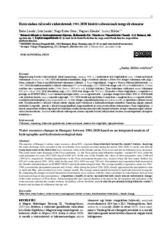 Báder, László and Iritz, László and Nagy, Eszter Dóra and Négyesi, Klaudia and Szalay, Mikós (2025) Határainkon túl eredő vízkészleteink 1981-2020 közötti változásának integrált elemzése. HIDROLÓGIAI KÖZLÖNY, 105 (2). pp. 13-23. ISSN 0018-1323