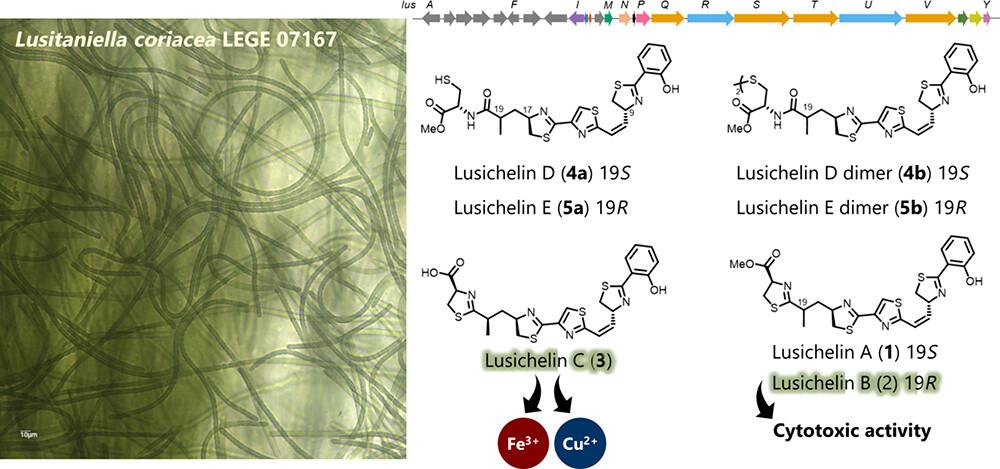 Sousa, Maria Ligia and Ferreira, Leonor and Ferreira, Dora and Forero, Abel M. and Castelo-Branco, Raquel and Szemerédi, Nikoletta and Spengler, Gabriella and Rodriguez, Jaime and Jimenez, Carlos and Leao, Pedro N. and Vasconcelos, Vitor and Reis, Mariana Alves (2025) Decoding Lusichelins A-E: An In-Depth Look at the Metallophores of Lusitaniella coriacea LEGE 07167-Structure, Production, and Functionality. JOURNAL OF NATURAL PRODUCTS. ISSN 0163-3864