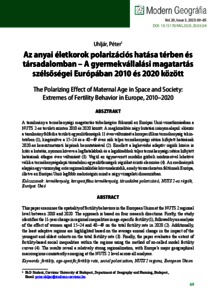 Uhljár, Péter (2025) Az anyai életkorok polarizációs hatása térben és társadalomban – A gyermekvállalási magatartás szélsőségei Európában 2010 és 2020 között = The Polarizing Effect of Maternal Age in Space and Society: Extremes of Fertility Behavior in Europe, 2010–2020. MODERN GEOGRÁFIA, 20 (3). pp. 69-85. ISSN 2062-1655