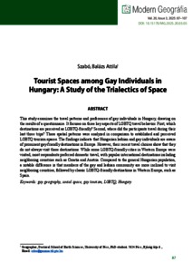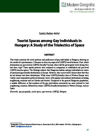 Szabó, Balázs Attila (2025) Tourist Spaces among Gay Individuals in Hungary: A Study of the Trialectics of Space. MODERN GEOGRÁFIA, 20 (3). pp. 87-107. ISSN 2062-1655