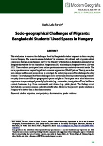 Suchi, Laila Parvin (2025) Socio-geographical Challenges of Migrants: Bangladeshi Students’ Lived Spaces in Hungary. MODERN GEOGRÁFIA, 20 (3). pp. 109-126. ISSN 2062-1655