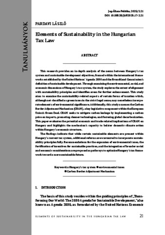 Pardavi, László (2025) Elements of Sustainability in the Hungarian Tax Law. JOG ÁLLAM POLITIKA: JOG- ÉS POLITIKATUDOMÁNYI FOLYÓIRAT, 17 (2). pp. 21-34. ISSN 2060-4580