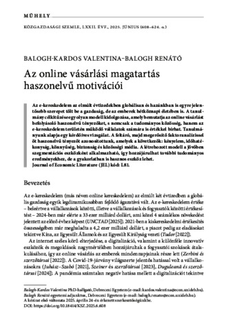 Balogh-Kardos, Valentina and Balogh, Renátó (2025) Az online vásárlási magatartás haszonelvű motivációi. KÖZGAZDASÁGI SZEMLE, 72 (6). pp. 608-624. ISSN 0023-4346