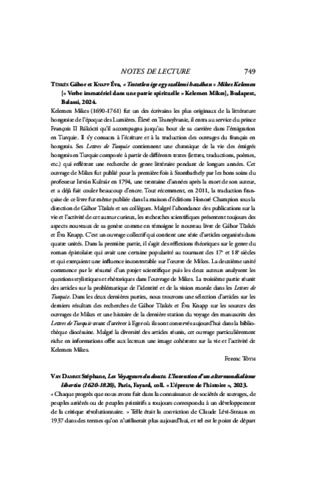 Tóth, Ferenc (2025) Tüskés Gábor et Knapp Éva, « Testetlen ige egy szellemi hazában » Mikes Kelemen [« Verbe immatériel dans une patrie spirituelle » Kelemen Mikes], Budapest, Balassi, 2024. DIX-HUITIEME SIECLE (57). p. 749. ISSN 0070-6760