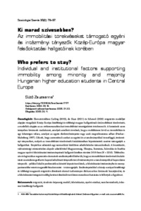 Sütő, Zsuzsanna (2025) Ki marad szívesebben? : Az immobilitási törekvéseket támogató egyéni és intézményi tényezők Közép-Európa magyar felsőoktatási hallgatóinak körében = Who prefers to stay? Individual and institutional factors supporting immobility among minority and majority Hungarian higher education students in Central Europe. SZOCIOLÓGIAI SZEMLE, 35 (2). pp. 79-97. ISSN 1216-2051
