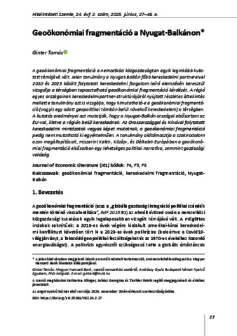 Ginter, Tamás (2025) Geoökonómiai fragmentáció a Nyugat-Balkánon. HITELINTÉZETI SZEMLE, 24 (2). pp. 27-46. ISSN 1588-6883