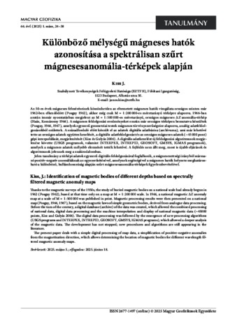 Kiss, János (2025) Különböző mélységű mágneses hatók azonosítása a spektrálisan szűrt mágnesesanomália-térképek alapján. MAGYAR GEOFIZIKA, 66 (1). pp. 24-38. ISSN 0025-0120