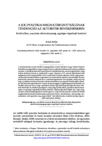 A tanulmányban annak elméleti megragadására teszek kísérletet, hogy miként írható le különféle paradigmákkal a jogot és jogrendszert eszközként felhasználó autoriter politikai rendszer. A politikatudományi elemzési keret nélkülözhetetlen annak megértéséhez, hogy milyen hatással vannak az autokráciák a jogra. Ugyanis a XX. századi előzmények után napjainkra ismét megerősödtek azok a tendenciák, amelyek súlyosan sértik a jogrendszerek liberális demokráciákban megszokott és evidenciának tekintett autonómiáját. Ennek a helyzetnek a leírására mutatom be az „autokrata legalizmus” koncepcióját, amely arra utal, hogy a politikai rendszerek kortárs autoriter fordulatai nem pusztán felszámolják a liberális demokráciák jogrendszereit, hanem új típusú joggal és jogfelfogással helyettesítik azt. Továbbá elemzem azt is, hogy a politikai rendszer jog feletti hegemóniájának tetten érhetőek történelmi és elméleti paradigmái: ezek pedig a kettős állam, populista alkotmányosság és az egységes végrehajtó hatalom elmélete. Végül pedig utalni fogok arra, hogy a jogrendszer autonómiáját figyelmen kívül hagyó és a jogi normát pusztán eszköznek tekintő megközelítések jelentős kockázatokat jelentenek mind a demokráciára, mind pedig a társadalomra: ezek egyrészt a jog „fegyverként” való alkalmazása, másrészt pedig a jog morális tartalmának eltűnése.
