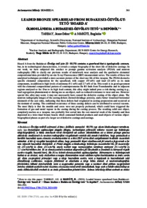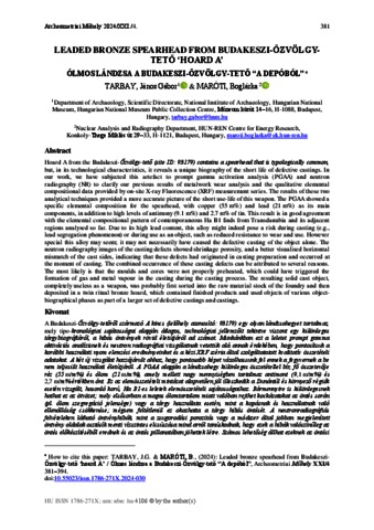 Tarbay, János Gábor and Maróti, Boglárka (2024) Leaded Bronze Spearhead from Budakeszi-Őzvölgy-tető ‘Hoard A’ = Ólmos lándzsa a Budakeszi-Őzvölgy-tető “A depóból”. ARCHEOMETRIAI MŰHELY, 21 (4). pp. 381-394. ISSN 1786-271X
