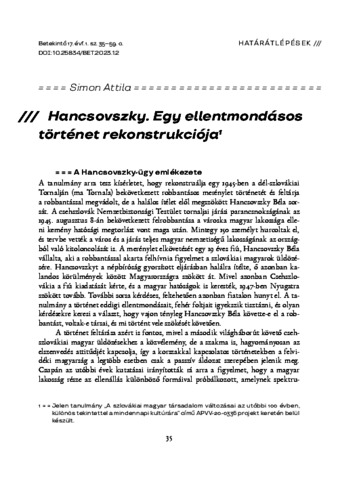 Simon, Attila (2023) Hancsovszky : Egy ellentmondásos történet rekonstrukciója. BETEKINTŐ, 17 (1). pp. 35-59. ISSN 2732-186X