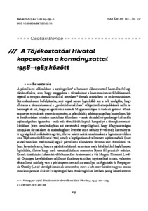 Csatári, Bence (2023) A Tájékoztatási Hivatal kapcsolata a kormányzattal 1958–1963 között. BETEKINTŐ, 17 (1). pp. 119-139. ISSN 2732-186X