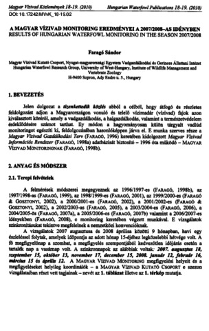 Faragó, Sándor (2010) A magyar vízivad monitoring eredményei a 2007/2008-as idényben. MAGYAR VÍZIVAD KÖZLEMÉNYEK, 2010 (18-19). pp. 43-203. ISSN 1416-1389