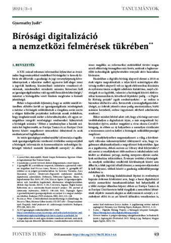 Gyarmathy, Judit (2024) Bírósági digitalizáció a nemzetközi felmérések tükrében. FONTES IURIS: AZ IGAZSÁGÜGYI MINISZTÉRIUM SZAKMAI FOLYÓIRATA, 10 (3-4). pp. 49-62. ISSN 2416-2159