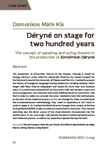 Kis, Domonkos Márk (2025) Déryné on stage for two hundred years : The concept of speaking and acting theatre in the production of Álmaimban Déryné. URÁNIA: INTERDISZCIPLINÁRIS FOLYÓIRAT : SZÍNHÁZ MOZGÓKÉP MÉDIA, 5 (1). pp. 58-79. ISSN 2786-3255