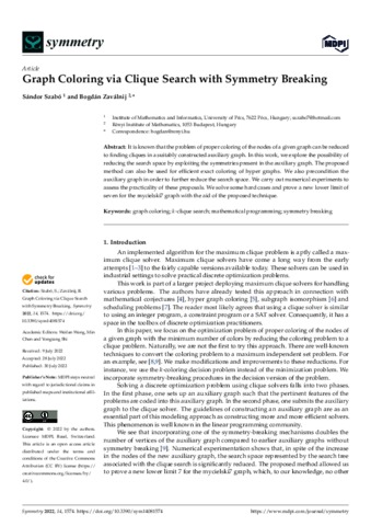 Szabó, Sándor and Zaválnij, Bogdán (2022) Graph Coloring via Clique Search with Symmetry Breaking. SYMMETRY (BASEL), 14 (8). ISSN 2073-8994