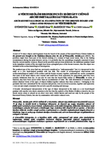 Gyöngyösi, Szilvia and Szabó, Géza and Barkóczy, Péter and Cseh, Julianna (2024) A vértesszőlősi bronzkincs és szórvány csüngő archeometallurgiai vizsgálata = Archaeometallurgical examination of the bronze hoard and stray-find pendant of Vértesszőlős. ARCHEOMETRIAI MŰHELY, 21 (4). pp. 423-444. ISSN 1786-271X
