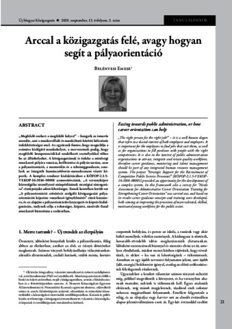 Belényesi, Emese (2020) Arccal a közigazgatás felé, avagy hogyan segít a pályaorientáció. ÚJ MAGYAR KÖZIGAZGATÁS, 13 (3). pp. 21-29. ISSN 2060-4599