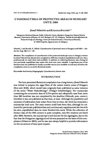 Németh, József and Buczkó, Krisztina (2024) Cyanobacteria of protected areas in Hungary until 2004. STUDIA BOTANICA HUNGARICA, 55 (1). pp. 5-140. ISSN 0301-7001