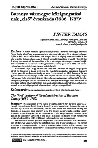 Pintér, Tamás (2025) Baranya vármegye közigazgatásának „első” évszázada (1686–1787) = The “first” century of the administration of Baranya County (1686–1787). JANUS PANNONIUS MÚZEUM ÉVKÖNYVE, 58. pp. 241-251. ISSN 0553-4429