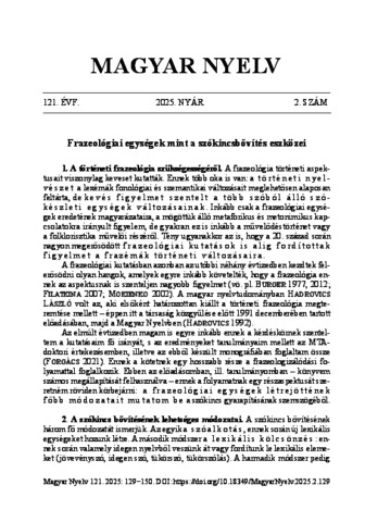 Forgács, Tamás (2025) Frazeológiai egységek mint a szókincsbővítés eszközei. MAGYAR NYELV, 121 (2). pp. 129-150. ISSN 0025-0228