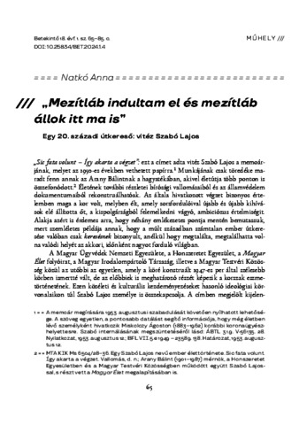 Natkó, Anna (2024) „Mezítláb indultam el és mezítláb állok itt ma is” : Egy 20. századi útkereső: vitéz Szabó Lajos. BETEKINTŐ, 18 (1). pp. 65-85. ISSN 2732-186X (print); 1788-7569 (online)