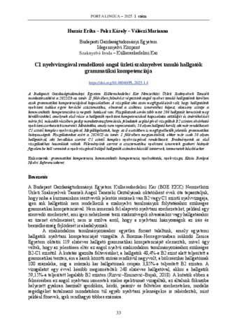 Huszár, Erika and Polcz, Károly and Válóczi, Marianna (2025) C1 nyelvvizsgával rendelkező angol üzleti szaknyelvet tanuló hallgatók grammatikai kompetenciája = Grammatical competence of Business English students with a C1 language exam. PORTA LINGUA (1). pp. 33-41. ISSN 1785-2420