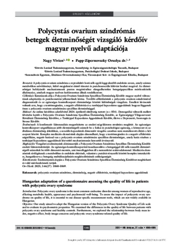 Nagy, Vivien and Papp-Zipernovszky, Orsolya (2025) Polycystás ovarium szindrómás betegek életminőségét vizsgáló kérdőív magyar nyelvű adaptációja = Hungarian adaptation of a questionnaire assessing the quality of life in patients with polycystic ovary syndrome. ORVOSI HETILAP, 166 (27). pp. 1060-1069. ISSN 0030-6002