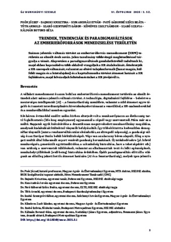 Poór, József and Dajnoki, Krisztina and Kun, András István and Pató Gáborné Szűcs, Beáta and Tóth, Arnold and Szabó-Szentgróti, Gábor and Kőmüves, Zsolt Sándor and Szabó, Szilvia and Kálmán, Botond Géza (2025) Trendek, tendenciák és paradigmaváltások az emberi erőforrások menedzselése területén. ÚJ MUNKAÜGYI SZEMLE, 6 (3). pp. 2-13. ISSN 2677-1306