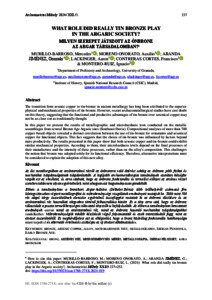 The transition from arsenic copper to tin-bronze in ancient metallurgy has long been attributed to the superior physical and mechanical properties of tin-bronze. However, recent archaeometallurgical studies have cast doubt on this theory, suggesting that the functional and productive advantages of tin-bronze over arsenical copper may not be as clear-cut as traditionally thought. In this paper we present the results of metallographic and microhardness tests conducted on the metallic assemblages from several Bronze Age Argaric sites (Southeast Iberia). Compositional analyses of more than 700 copper-based objects revealed a distinct correlation between the use of tin-bronze for ornaments and arsenical copper for functional objects. This fact suggests that the choice of tin-bronze was influenced by factors beyond mere productivity. The results presented in this paper show that both arsenic copper and tin-bronze could exhibit similar mechanical properties. According to them, their microhardness levels depend on the final processes of their manufacture and the intensity of these processes, rather than on the alloy's composition. This challenges the notion that bronze was adopted solely for its functional efficiency. Therefore, alternative interpretations must be considered to explain the adoption of this new alloy. | Az ősi metallurgiában az arzéntartalmú rézről az ónbronzra való áttérést sokáig az ónbronz jobb fizikai és mechanikai tulajdonságainak tulajdonították. A legújabb archeometallurgiai tanulmányok azonban kétségbe vonják ezt az elméletet, és arra utalnak, hogy az ónbronz funkcionális és termelési előnyei az arzénes rézzel szemben talán nem olyan egyértelműek, mint ahogyan azt hagyományosan gondolták. Ebben a tanulmányban a bronzkori Argar-kultúra (Délkelet-Ibéria) több lelőhelyéről származó fém leletegyütteseken végzett metallográfiai és mikrokeménységi vizsgálatok eredményeit mutatjuk be. Több mint 700 réz alapú tárgy összetételének elemzése egyértelmű összefüggést mutatott ki az ónbronz díszítésre és az arzéntartalmú réz használati tárgyakra történő felhasználása között. Ez a tény arra utal, hogy az ónbronz választását a puszta termelékenységen túlmutató tényezők is befolyásolták. Az ebben a tanulmányban bemutatott eredmények szerint mind az arzéntartalmú réz, mind az ónbronz hasonló mechanikai tulajdonságokkal rendelkezhet. Mikrokeménységük inkább készítésük végső folyamataitól és azok intenzitásától függ, mint az ötvözet összetételétől. Ez megkérdőjelezi azt az elképzelést, hogy a bronz kizárólag funkcionális hatékonysága miatt terjedt el és alternatív értelmezés szükséges az új ötvözet alkalmazására.