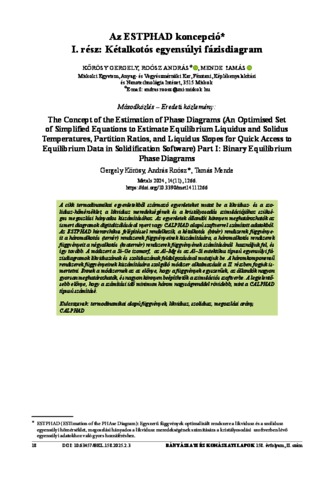 Kőrösy, Gergely and Roósz, András and Mende, Tamás (2025) Az ESTPHAD koncepció : I. rész: Kétalkotós egyensúlyi fázisdiagram. BÁNYÁSZATI ÉS KOHÁSZATI LAPOK (2023-), 158 (2). pp. 18-33. ISSN 3057-9899