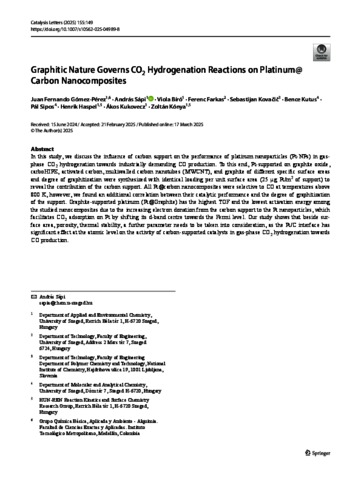 Gomez Perez, Juan Fernando and Sápi, András and Bíró, Viola and Farkas, Ferenc and Kovačič, Sebastijan and Kutus, Bence and Sipos, Pál Miklós and Haspel, Henrik and Kukovecz, Ákos and Kónya, Zoltán (2025) Graphitic Nature Governs CO2 Hydrogenation Reactions on Platinum@Carbon Nanocomposites. CATALYSIS LETTERS, 155 (4). No. 149. ISSN 1011-372X